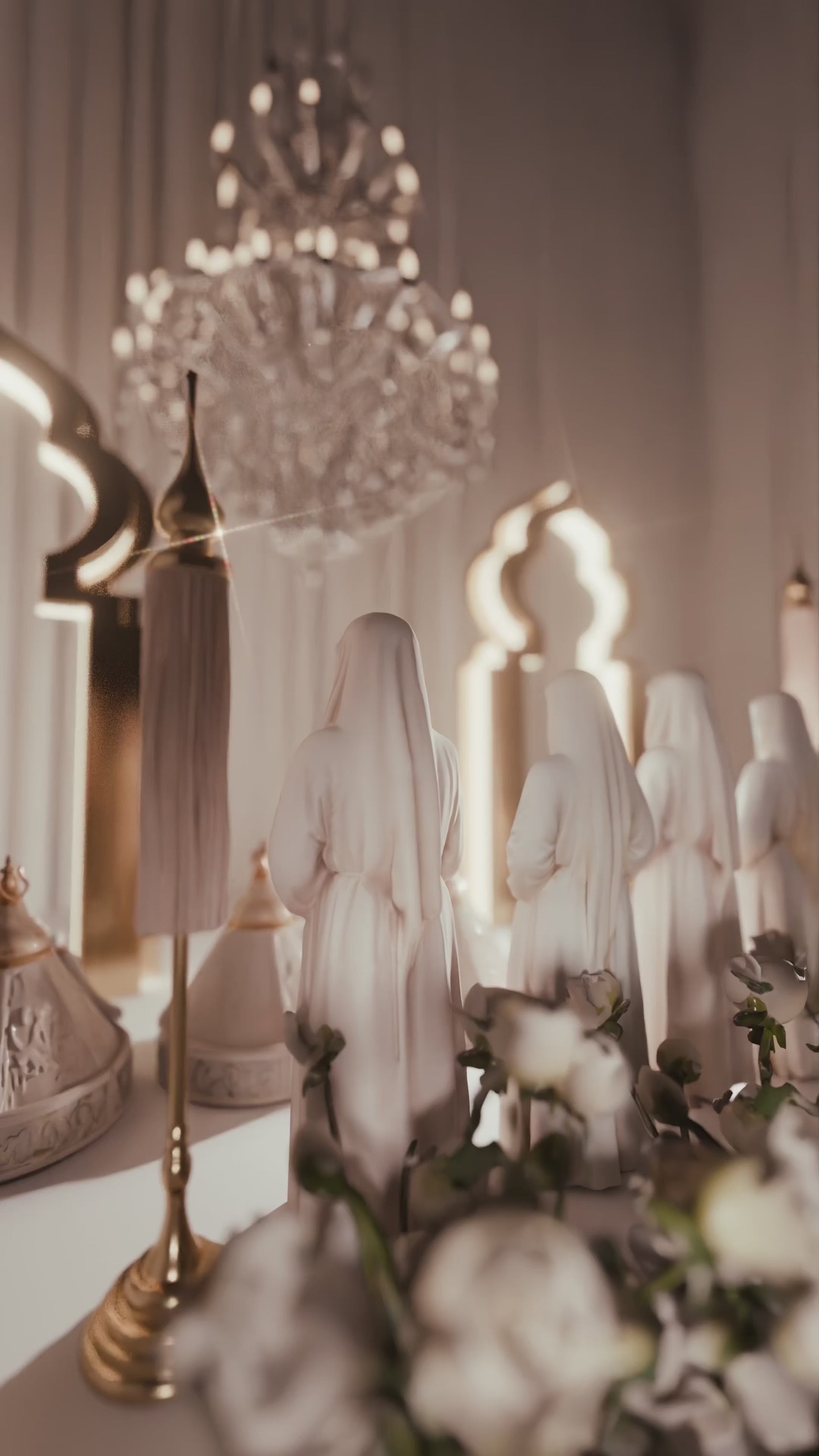A cinematic Moroccan-inspired digital invitation where the camera moves gracefully through a hall of veiled women as traditional chants echo in the background. The scene unfolds toward an ornate Moroccan board where your personalized event details appear in golden light. Perfect for henna nights, thara, or wedding celebrations. Designed with cultural elegance by BYMIRFY
