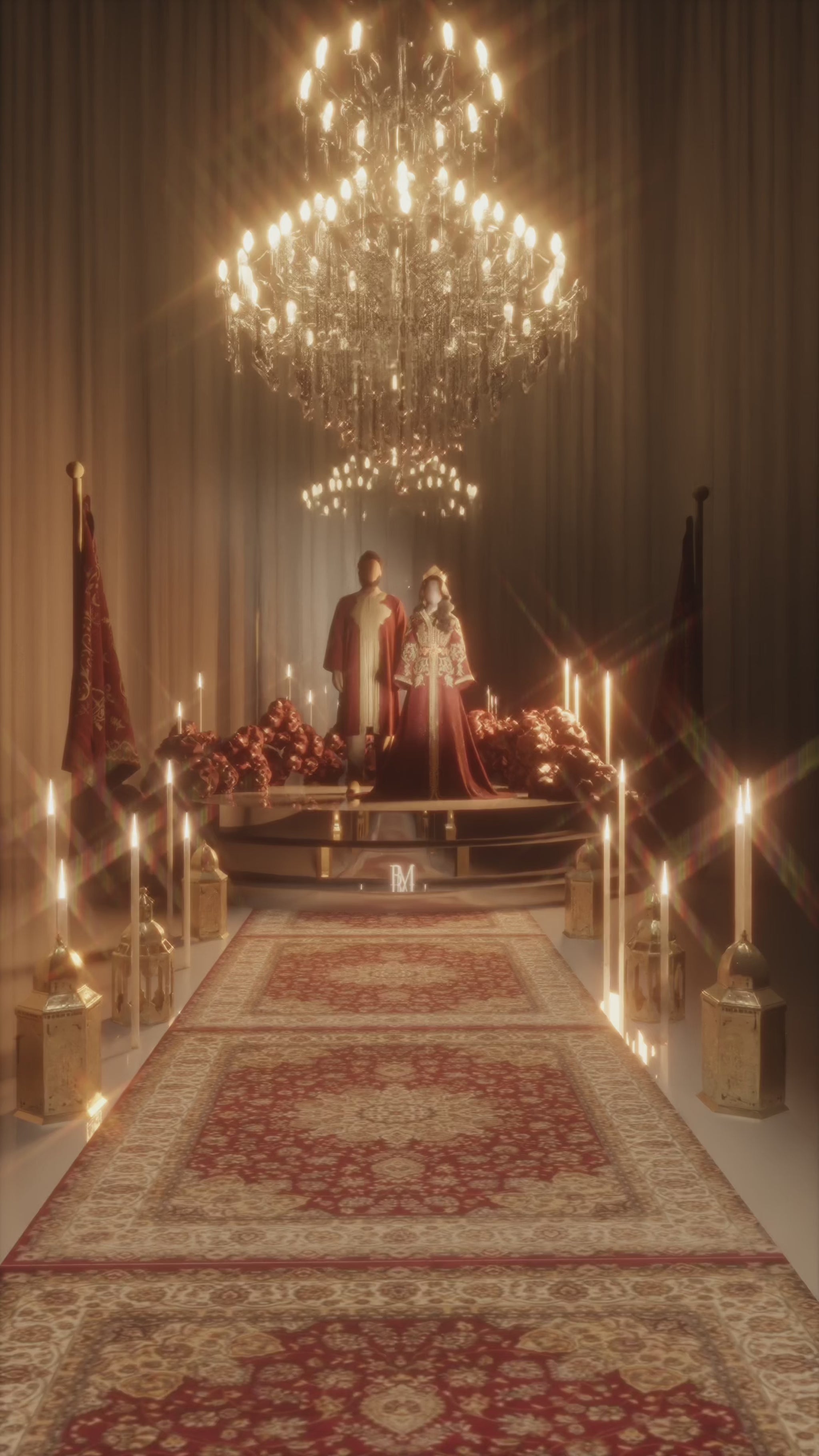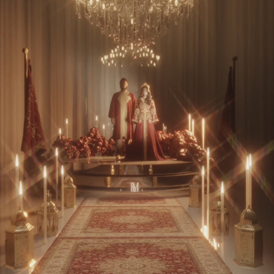 A luxurious digital invitation inspired by Moroccan elegance featuring a grand stage illuminated by chandeliers and golden lanterns. The outfits and details can be fully customized – let us know your preferences. Perfect for weddings, engagements, henna, or baby celebrations. Exclusively designed by BYMIRFY.